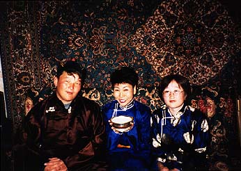 5時前に終わったので、帰りに国立美術館へ行ってみた。展示物は仏教美術が中心で、仏像などは明らかにインド仏教・チベットのラマ教・中国仏教の影響を受け、アラビア風もある。ここは文化のクロスロードだ。ゆっくり見ていると、5時をとっくに過ぎてしまったが、日本と違って閉館を知らせる館内放送がない。終了時刻はお客さん次第のようだ。 今日の夕食は、こちらで友達になったダワーの家に招待されている。そろそろ外食にも飽きてきたので、モンゴルの家庭科理を期待してタクシーで出かける。斎藤先生は私に万一の事態が生じた時のためホテルに残るそうだ。彼女の家はアパートの二階なのだが、廊下の電気が真っ暗なのには驚いた。日本と比べると一般家庭への電力の供給量が充分とはいえないようだ。夕食のメニューは羊料理で、アーロール(固くて酸っぱい乳製品)とタラグ(ヨーグルト)の他、馬乳酒(アイラグ)も出された。これは馬の乳を発酵させたアルコール度の低い飲み物で色は白く、味には軽い酸味がある。栄養価が高く、夏場はこれを飲んで食事代わりにする人も多いとか。 |