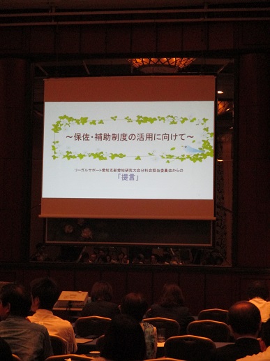 保佐・補助の利用割合を高め、活用できるかについて検討していく中で、当該テーマを考えることは「意思決定支援」を考えることに他ならないとの気づきに至ったとのことです。周知・PR、共通理解・情報の共有、必要性・補充性の原則、支援する人への支援、制度の柔軟性ある運用、自己研鑽という6つの項目に分けて、「意思決定支援」を念頭に置いた分科会担当者が現段階でできる「提言」がなされ締めくくられました。